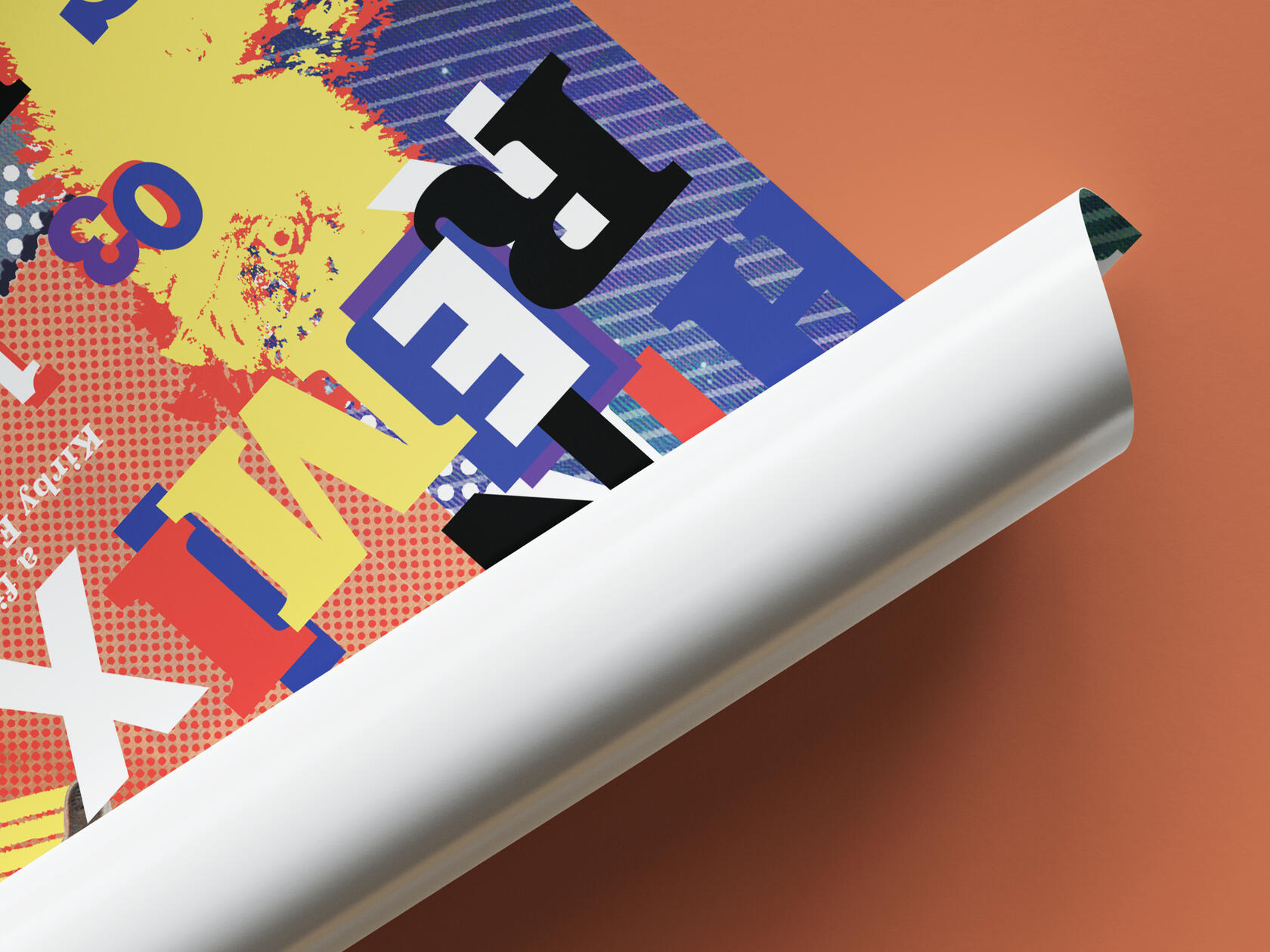 This project was created with elements I cut out and scanned from various magazines. I collaged these images and added text to make a movie poster for Everything is a Remix. The text had to include the title, theater location, release date, and the websites for the theater and the movie.I embraced the textures from scanning in images and explored layering images, textures, fonts, and bright colors. Jennifer Morla’s work inspired my design, and I enjoyed experimenting with texture and finding balance within these elements.