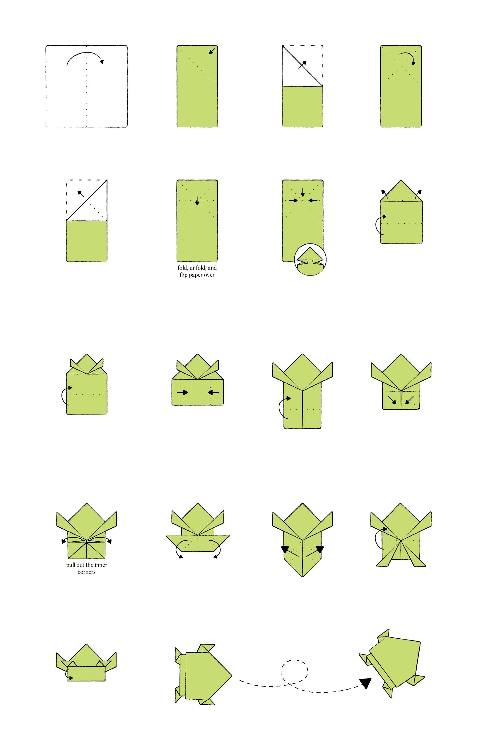 The challenge of this project was creating a poster that teaches viewers how to fold origami while using the least amount of words possible. I selected a jumping origami frog due to its significance in Japanese culture. For example, they are often gifted as a send-off gift for someone who may be going on a trip. I drew the steps out, had classmates test them for clarity, and made alterations as needed.I arranged the 17 steps on a grid using only black, white, and green. I added hand-drawn strokes, dashed lines, arrows, closeups, and words as needed to make the steps as straightforward as possible. The instructions end with a visual of the result: a jumping origami frog.