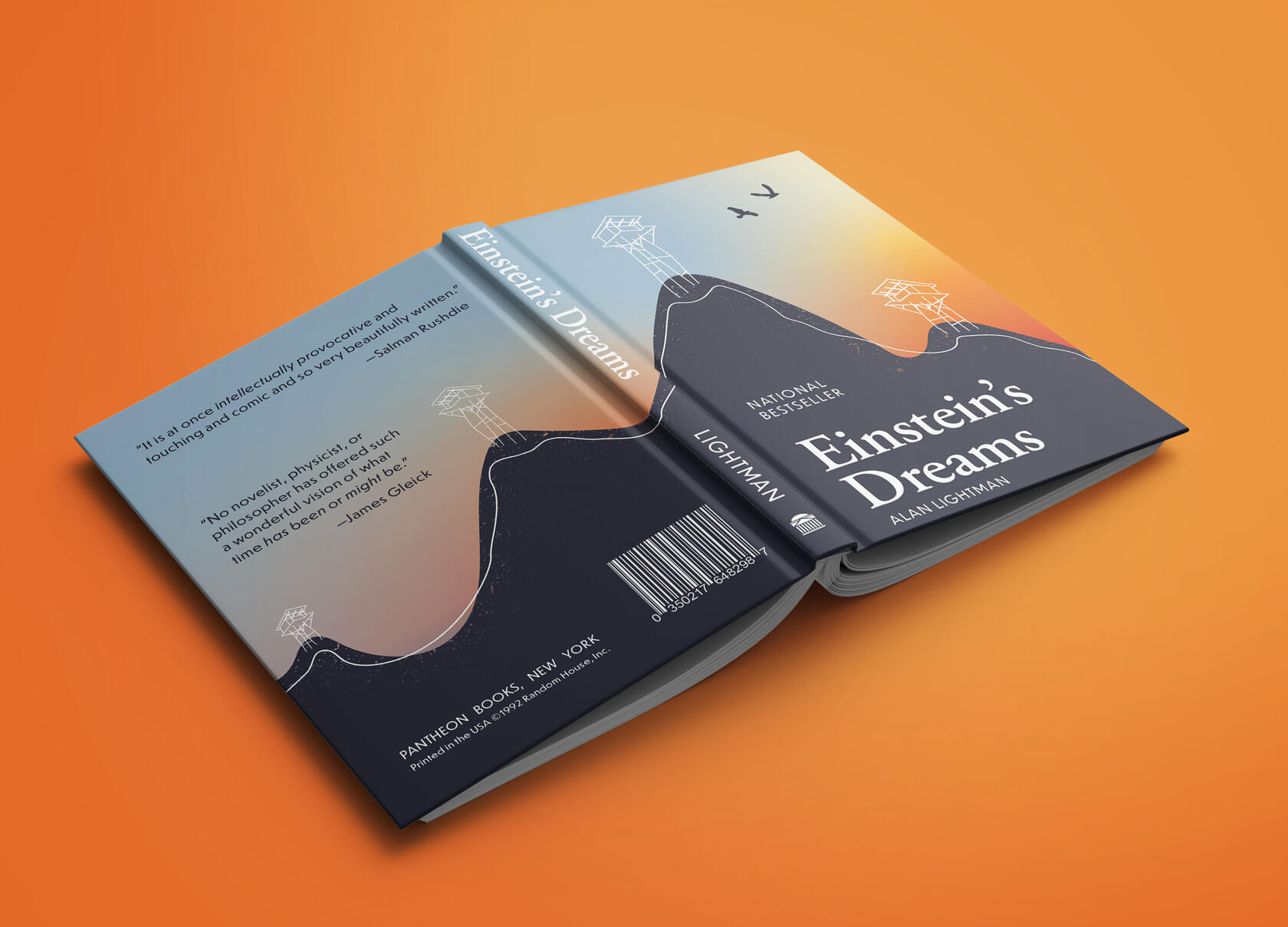 This book cover was designed based on the 26 April 1905 chapter in Einstein’s Dreams by Alan Lightman. This story is about time flowing more slowly the further away you are from the earth’s center. People began to move to the mountains in an attempt to age slower. They built houses on stilts and, over time, height became representative of one’s status. These houses were described as “flocks of fat birds squatting on long skinny legs.”One of the aspects of this story that stood out to me the most was how the people in the mountains became so adjusted to that lifestyle that they didn’t question it, but instead looked at the people beneath them and were envious of how happy and carefree they appeared.I found the visuals of people frantically running up and down ladders to grab necessities like groceries fascinating, and I wanted to create a book cover that reflected these perceptions. The gradient mimics the fun and carefree nature the lower citizens experienced in contrast to the jealousy of the elevated individuals.