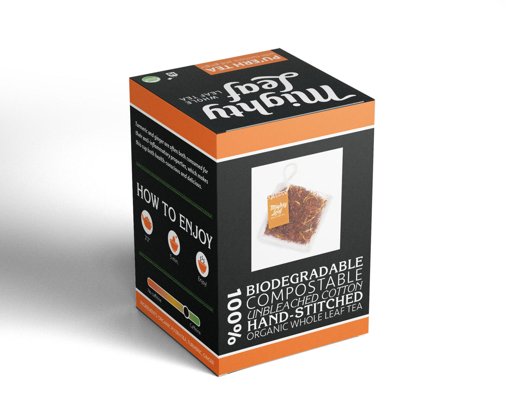 This project was an expansion of the Mighty Leaf Tea brand. I researched and developed a target audience to decide what type of tea to add to their selections. Once I established this information, I created mood boards, defined the tea’s ingredients, and selected the color palette. My packaging for the product was designed using my research to align with my target audience’s needs and desires.My product is Pu’erh tea with turmeric and ginger. It is marketed towards young, busy, eco-friendly, and adventurous people who need that extra energy boost to help them partake in the activities they enjoy that help them destress. Turmeric reduces joint pain, detoxes the liver, and increases digestion. Ginger also assists in decreasing inflammation as well as boosting immunity.